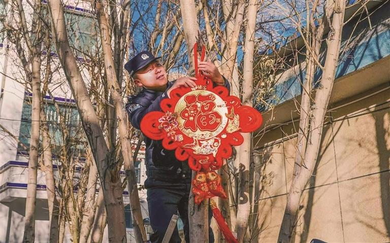 夜幕四合,一天的走訪慰問與便民服務圓滿結束,派出所營區里迎來了一場屬于邊關衛士的新春“家宴”。“來來來,搭把手!把中國結掛高點,更顯喜慶!”教導員楊曦淙踩著凳子懸掛中國結,新警吳措多杰在一旁穩穩扶著梯子;另一邊,民警們三五成群,貼春聯、掛彩燈,將營區裝點得喜氣洋洋、年味十足。
