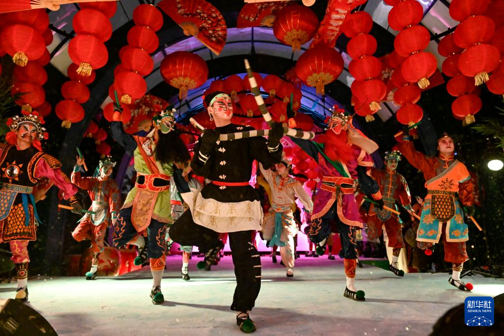 2月16日,在俄羅斯首都莫斯科,來自中國廣東普寧的富美青年英歌隊在“莫斯科中國新年”慶祝活動開幕式上表演。新華社發(fā)(亞歷山大攝)