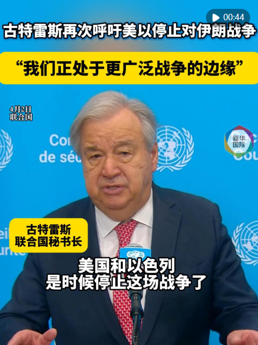 聯合國秘書長古特雷斯2日對媒體發表講話,再次呼吁美國和以色列停止針對伊朗的戰爭,同時呼吁伊朗停止攻擊鄰國。