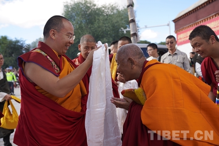 班禪一行順利抵達后,現場桑煙繚繞、法號長鳴,扎什倫布寺高僧代表向班禪敬獻哈達,班禪向僧眾及在此等候的信眾們揮手致意。隨后,班禪在手持黃傘、香爐的高僧引領下徐徐而行,經多加大院進入措欽大殿。