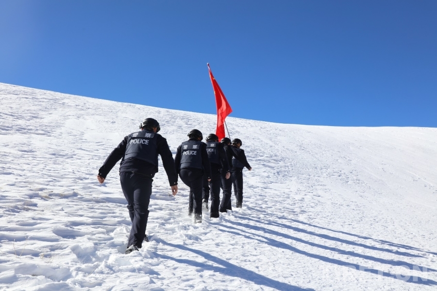 風雪中,全體民警舉起凍僵的右拳,面向界樁重溫入黨誓詞。凍裂的皮膚、結霜的眉睫、鏗鏘的誓言,與身后獵獵作響的五星紅旗交織在一起。