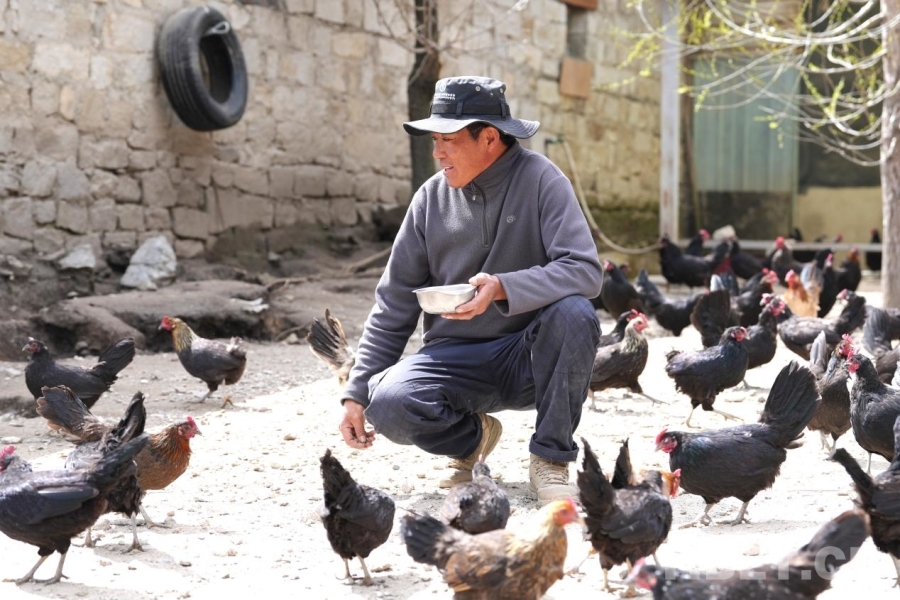 次仁羅旦喂養藏雞