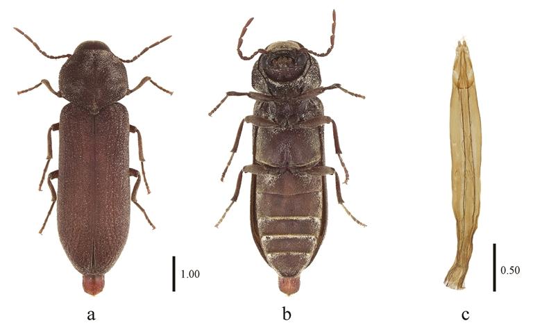 據了解,“布達拉拉薩竊蠹”體型較小,體色呈紅棕色,體長約4.8至6.9毫米。其最重要的鑒定特征為觸角結構:觸角共11節,第5節和第7節明顯膨大,呈現出較為突出的鋸齒狀,而末端三節則細長呈絲狀。這種觸角形態在其所屬的竊蠹亞科中極為少見,是研究團隊確立新屬的重要科學依據之一。此外,該物種小盾片上缺乏該亞科多數類群常見的點刻溝,這一差異性特征也為其準確鑒別提供了關鍵依據。