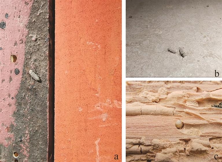 博士生周璇介紹,根據現有調查數據,該新種主要分布于布達拉宮、羅布林卡及拉薩部分歷史悠久的古建筑木結構中。該物種一年發生一代,屬于完全變態昆蟲,其幼蟲具有鉆蛀木材的習性,提示其參與了古建筑木材的生物降解過程。相關發現不僅加深了我們對布達拉宮等古建筑生態系統復雜性的認識,也為今后科學評估生物侵蝕風險、保護木質文化遺產免受生物影響,提供了重要的基礎數據和參考物種。
