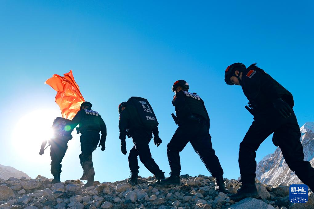 12月24日,深冬的珠峰下雪山連綿、山道蜿蜒,珠峰邊境派出所的次里品楚、劉建宏、茍禹、于蜜珍和班馨月5名新警在同事景浩的帶領下迎著寒風前行。這是他們首次深入珠峰核心區執行巡邏任務。