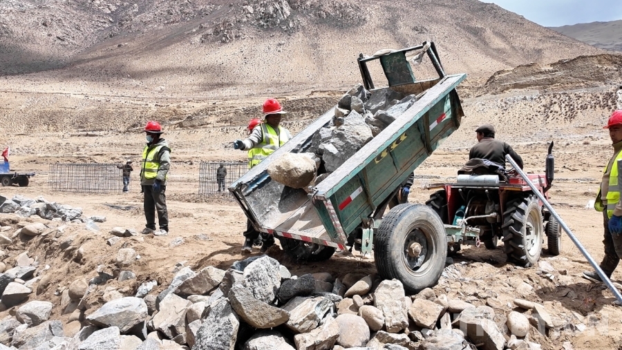 中國西藏網訊 春日回暖,在西藏日喀則市南木林縣奴瑪鄉奴瑪村,以工代賑項目施工現場熱火朝天。