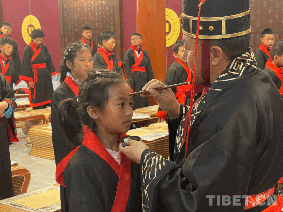 中國西藏網(wǎng)訊 4月22日下午,在孔子故里曲阜,一場莊重的開筆禮舉行。來自西藏山南錯那市的48名中小學生身著傳統(tǒng)服飾,在司儀的引導下依次完成正衣冠、朱砂啟智、啟蒙描紅、擊鼓鳴志、拜師行禮等環(huán)節(jié),在千年儒風的浸潤中開啟了對中華優(yōu)秀傳統(tǒng)文化的又一次體驗。