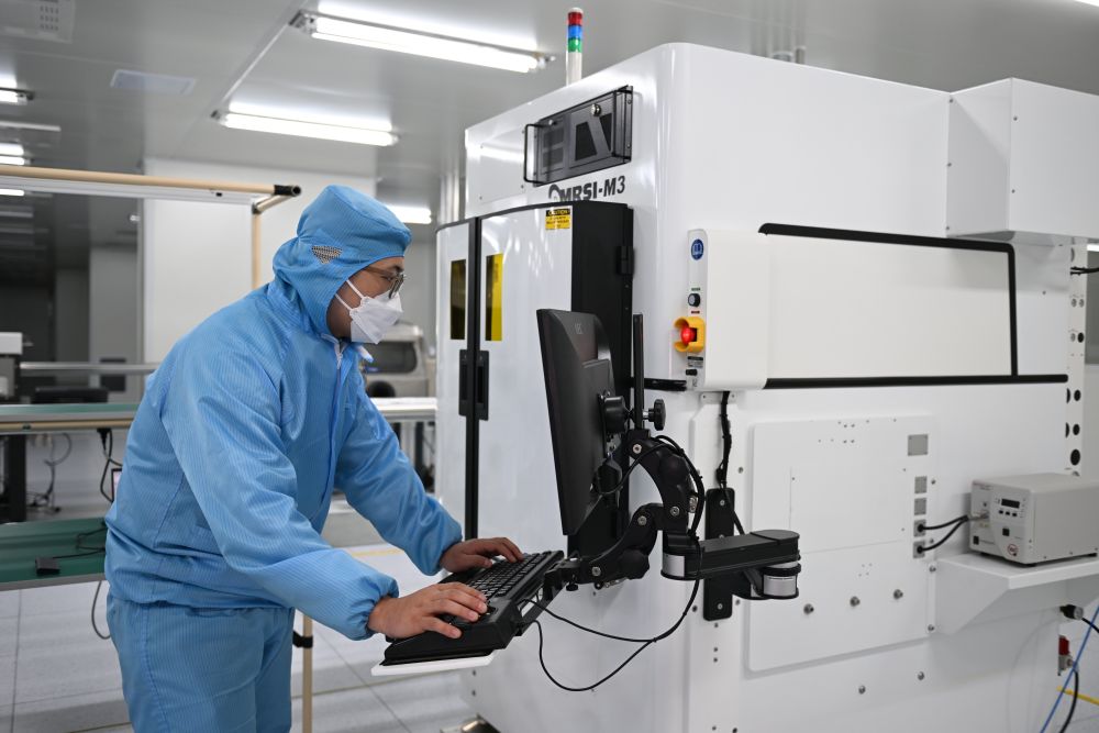 3月28日,在雄安科創中心中試基地,芯聯新(河北雄安)科技有限公司工作人員在調試芯片生產設備。新華社記者 牟宇 攝