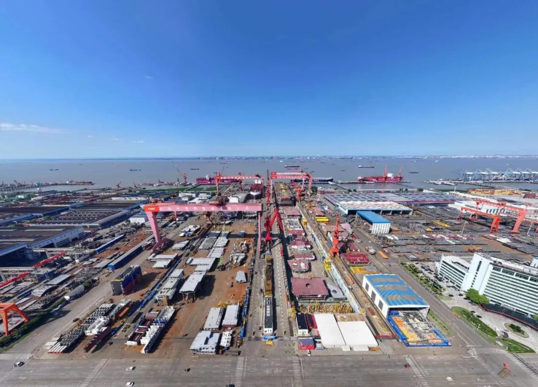 俯瞰第二艘國產大型郵輪搭載總裝現場。陸佳駿 攝