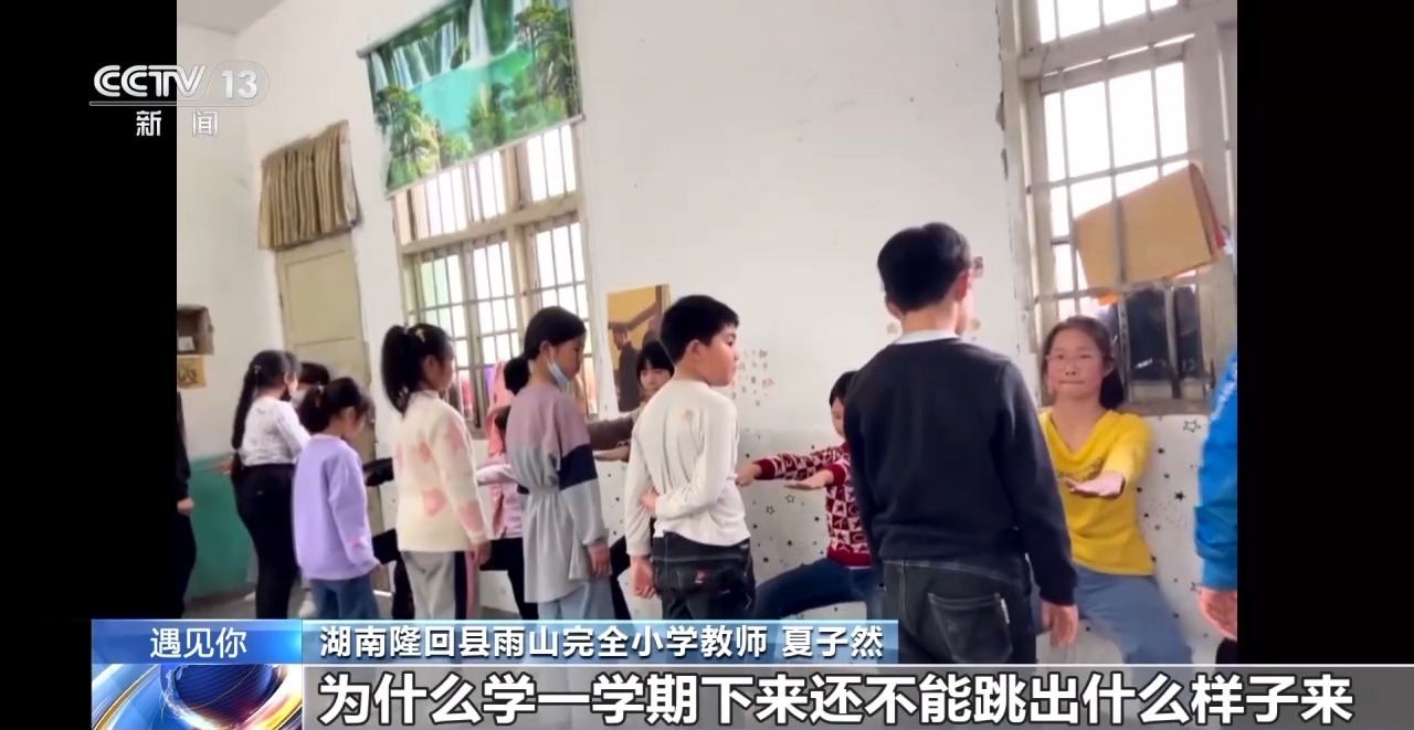 湖南隆回縣雨山完全小學老師 夏子然:跟他們跳舞,任何時候都是很難忘的回憶,每天都是限定版,我會用拍視頻的方式給記錄下來,在課后一個一個放大,去觀察他們的狀態和跳舞的動作,在第二節課,再做出相對應的調整。跳舞能夠讓他們放松,跳舞能夠讓他們變得開心,我最初的目的就達到了。