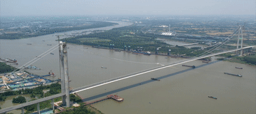 江蘇南京,仙新路過江通道主橋建設中,創新應用中建五洲研發的抗疲勞正交異性鋼橋面板,試驗結果顯示橋梁的使用壽命提高72%以上。