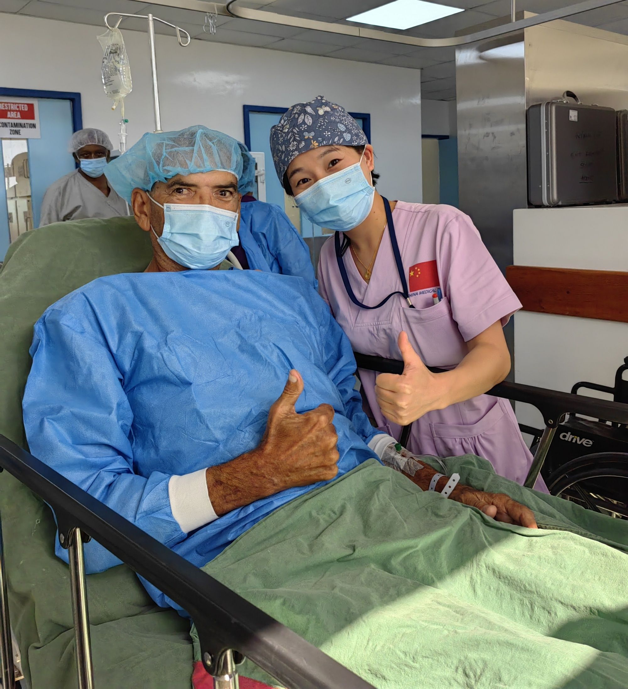 護士袁小舒與當地醫護人員在工作中