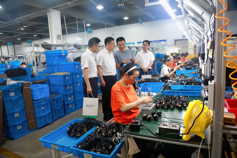 7月12日,在位于浙江溫嶺的愛科賽智能科技公司,農行溫嶺支行工作人員開展金融問需服務。新華社發(程蘊 攝)