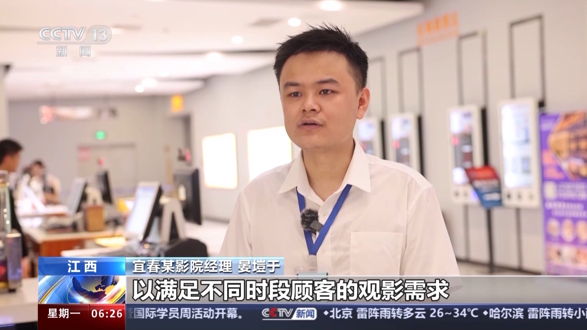 宜春某影院經(jīng)理 晏塏于:一方面,我們增加了主力影片的排片量,以滿足不同時段顧客的觀影需求;第二方面是我們影院增派了人手,提高了影城的接待能力和服務(wù)水平,減少顧客的排隊等待時間。