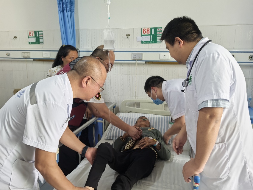 肖袁英和同事趕到馬烈鄉新華村時,距離災害現場還有約2公里。“傷者在河對面的山上,道路、橋梁已沖毀,過不去。靠著挖掘機的幫助,我們才平穩地擺渡到河對岸。”肖袁英說,腳下到處都是滑坡體,泥沙漫過了腳踝,“當地人帶著我們走,根本沒有路。走過了玉米地、河灘、花椒林,帶路村民一路用砍刀掃平荊棘,開出一條路,徒步1個小時才找到患者。”