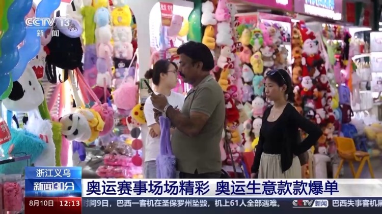 搭乘奧運東風的不僅是體育健兒的同款配飾,奧運周邊產品也備受市場青睞。在義烏國際商貿城,這里匯集26個大類、210多萬種商品,不僅滿足了全球觀眾和參賽者的需求,也給義烏商家帶來了明顯的經濟效益。