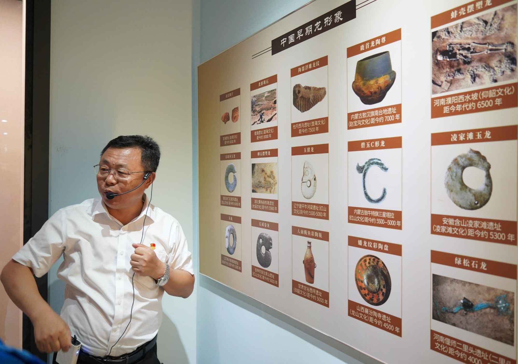 李井巖介紹早期龍形象(央廣網記者 李子平 攝)