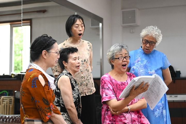 寧夏銀川市金鳳區長城花園社區居民在活動室排練節目(2024年6月20日攝)。新華社記者 毛竹 攝
