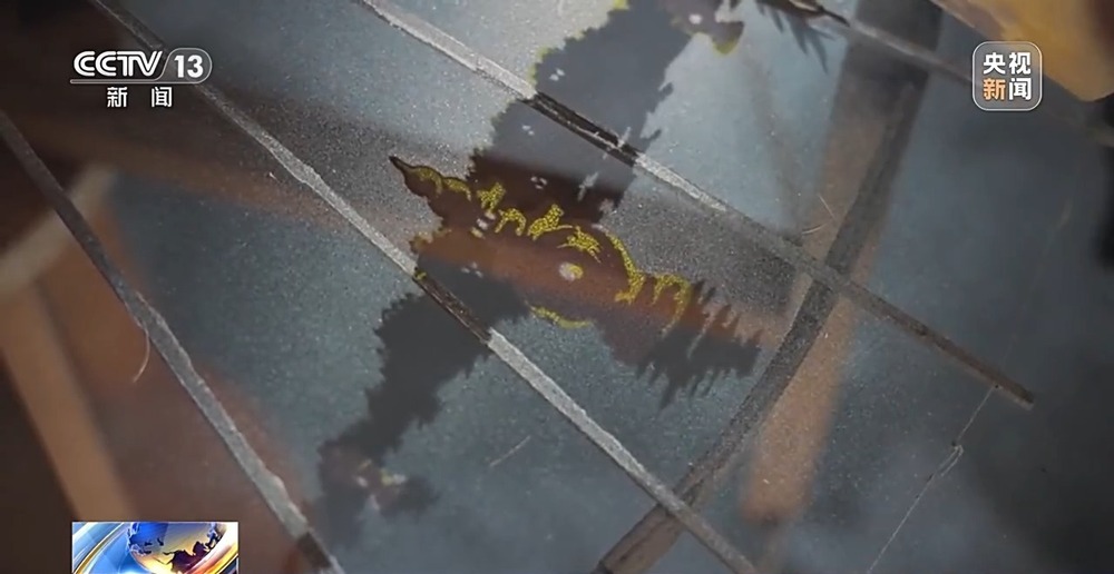 一個(gè)小時(shí)后,一幅由刷花工藝?yán)L成的三潭印月圖案躍然傘面之上,西湖風(fēng)景與杭州絲綢通過刷花這一手工技藝,完美地融合在了一起。