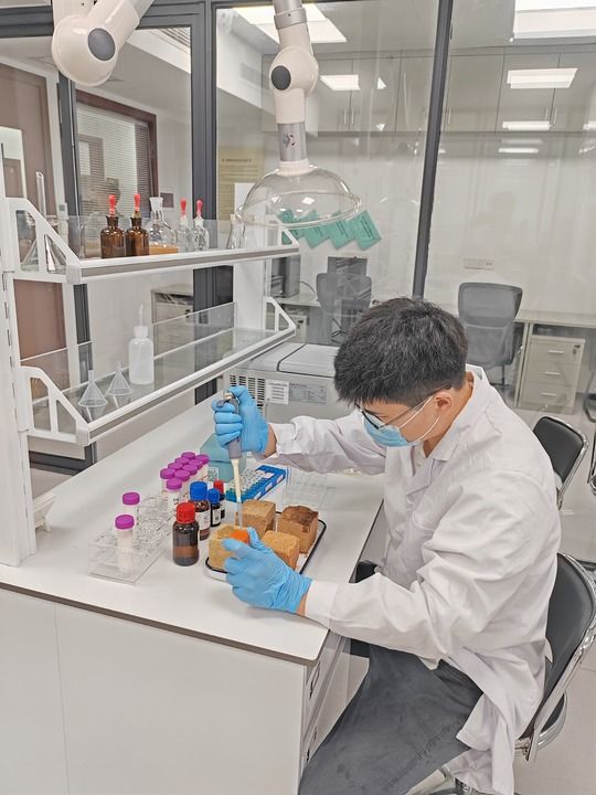 2024年7月8日,研究人員在杭州良渚古城遺址世界遺產(chǎn)監(jiān)測管理中心的潮濕環(huán)境土遺址保護(hù)實(shí)驗(yàn)室進(jìn)行試驗(yàn)。 新華社記者 馮源 攝