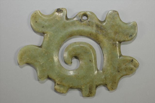 要說紅山文化玉器中的代表作,當屬現收藏于中國國家博物館、學名為“碧玉C形龍”的“紅山玉龍”。1971年,它在赤峰市翁牛特旗賽沁塔拉嘎查重見天日,以墨綠色的身軀,高約26厘米的雄姿,一千克的重量和生動精美的雕琢,贏得了“中華第一龍”的美譽。