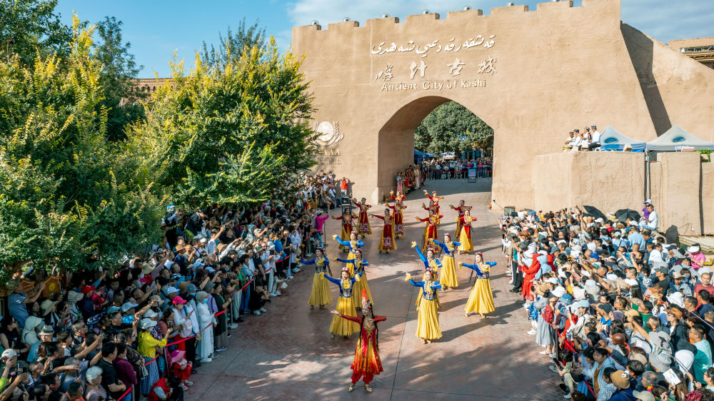 新疆喀什古城景區(qū)開城儀式現(xiàn)場(chǎng)。新華社發(fā)(熱衣丁·蘇來曼 攝)