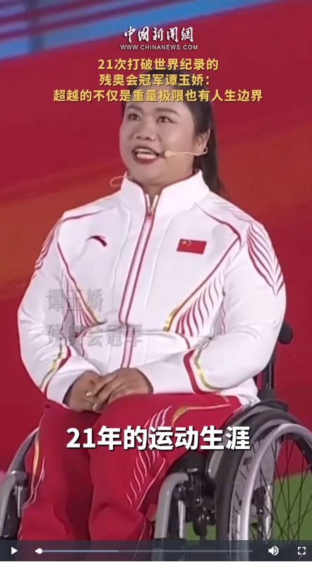 1990年出生的譚玉嬌7歲時因骨髓炎導致右腿殘疾。如今,她拿到了43枚金牌,21次打破世界紀錄。一次次超越重量極限的她,也在超越著她人生的邊界。譚玉嬌成為中國首位國際殘奧委會運動員委員會委員,在巴黎殘奧會閉幕式上留下了屬于中國的獨特印跡。