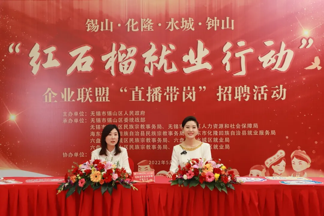 江蘇省無錫市錫山區與貴州省六盤水市水城區、鐘山區,青海省海東市化隆回族自治縣通過網絡平臺舉行“紅石榴就業行動”合作簽約暨企業聯盟“直播帶崗”招聘活動。江蘇省民族宗教事務委員會供圖