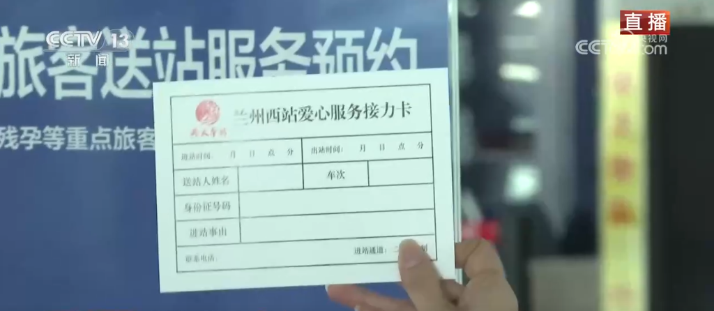 記者手里拿的“愛心服務接力卡”是今年車站升級的服務。針對沒有車票不能接送站的情況,可以在進站口說明情況之后領取“接力卡”作為通行的憑據,在卡片上寫清楚個人信息、聯系方式和進站事由之后,直接進站接送老幼病殘孕等重點旅客,出站時再把這張接力卡交回工作人員手中,完成閉環服務。