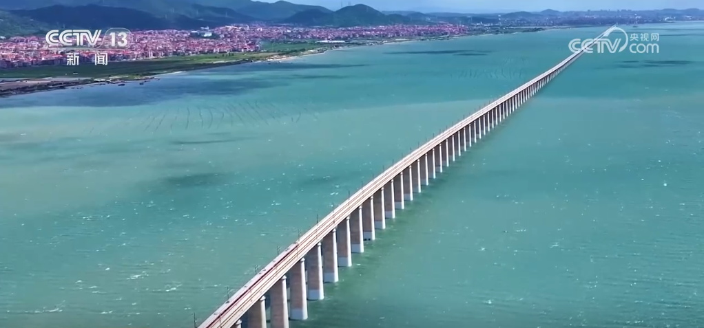 這是我國首條設(shè)計時速350公里的跨海高鐵——福廈高鐵湄洲灣跨海大橋。碧波之上,大橋氣勢恢宏,連接兩岸。在跨海大橋上行車,受海上風(fēng)力影響很大,通過這樣的路段通常需要減速慢行。但福廈高鐵實(shí)現(xiàn)了“跨海過橋不減速”,在不設(shè)風(fēng)屏障等防風(fēng)措施下,列車可在8級大風(fēng)下以時速350公里速度行駛。國慶假期,福廈高鐵加開195趟列車,滿足旅客出行需求。