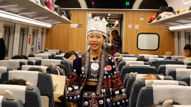 ▲金秋九月,云南寧洱哈尼族彝族自治縣的青少年宣講團(tuán),在中老鐵路寧洱至昆明路段宣講民族團(tuán)結(jié)誓詞碑故事。新華社發(fā)