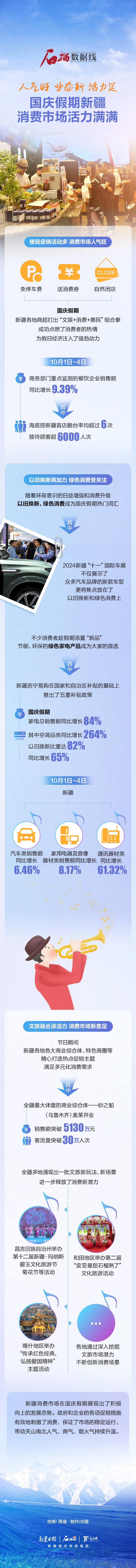 國慶假期,新疆各地商超打出“文娛+消費+惠民”組合拳,成功點燃了消費者的熱情,為假日經濟注入了強勁動力。政府和企業的各項促銷措施有效地刺激了消費,帶動天山南北人氣、商氣、煙火氣持續升溫。