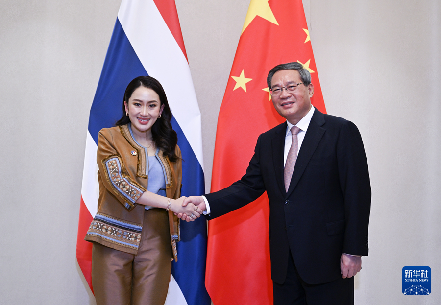 當地時間10月10日,國務院總理李強在萬象出席東亞合作領導人系列會議期間會見泰國總理佩通坦。新華社記者 張領 攝
