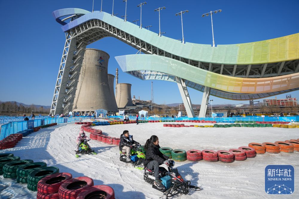 游客在首鋼滑雪大跳臺下的“首鋼園冰雪匯”體驗雪上游樂項目(2023年1月31日攝)。 新華社記者 鞠煥宗 攝