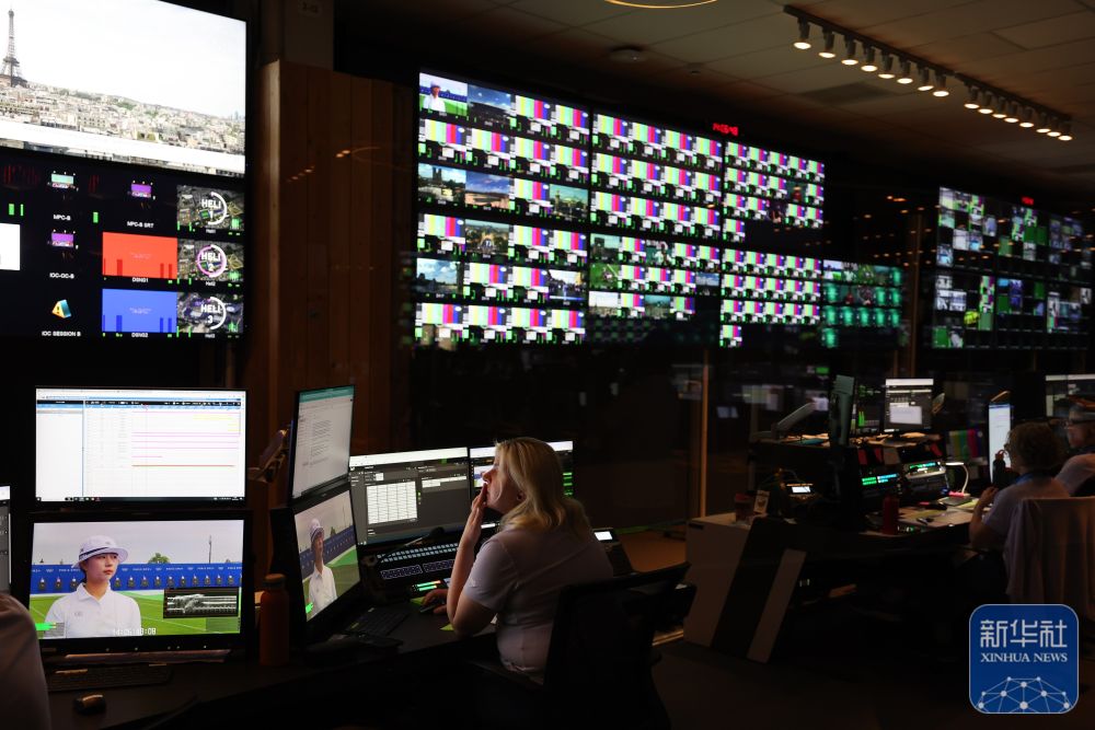 工作人員在奧林匹克廣播服務公司轉播技術中心工作(2024年7月25日攝)。 阿里云與奧林匹克廣播服務公司(OBS)共同打造的OBS Cloud成為巴黎奧運全球轉播的重要基礎設施。 新華社記者 黃宗治 攝