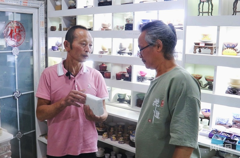 在繞南陶瓷主題園區,詹金發和同事給游客分別展示、講解釉果制作技藝和水碓加工技藝,讓更多人對傳統的陶瓷加工技藝產生興趣。詹金發這一講解就是十多年。