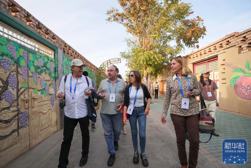 10月15日,與會嘉賓在吐魯番市高昌區(qū)亞爾鎮(zhèn)新城片區(qū)新城西門村參訪。