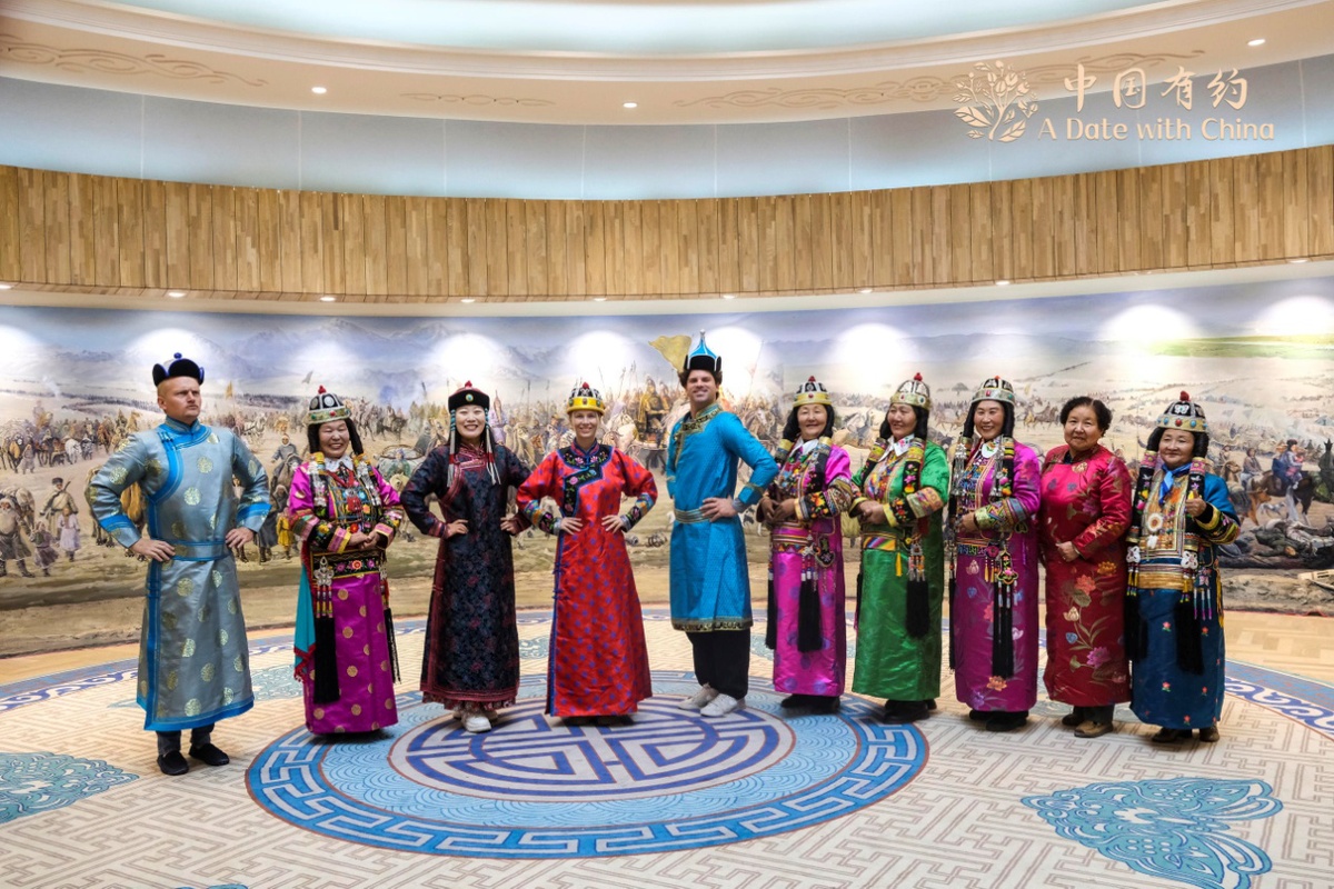 聽完講解后,西海非物質文化遺產交流中心民間藝人們身穿華麗的民族服飾,伴隨著歡快的薩吾爾登舞,為采訪團成員上演了一場精彩絕倫的視覺盛宴。中國日報美籍專家Elliot McGowen表示,開始還覺得奇怪,然而在這里了解了蒙古族在新疆的歷史后,大為震撼。在這幾天新疆的采訪中,他看到除了維吾爾族以外的其他民族,Elliot 表示:“其他地方很少有這樣豐富的多樣性,看到這里各族人民如此團結、攜手同行,令我非常感動。“(編輯:劉世東)