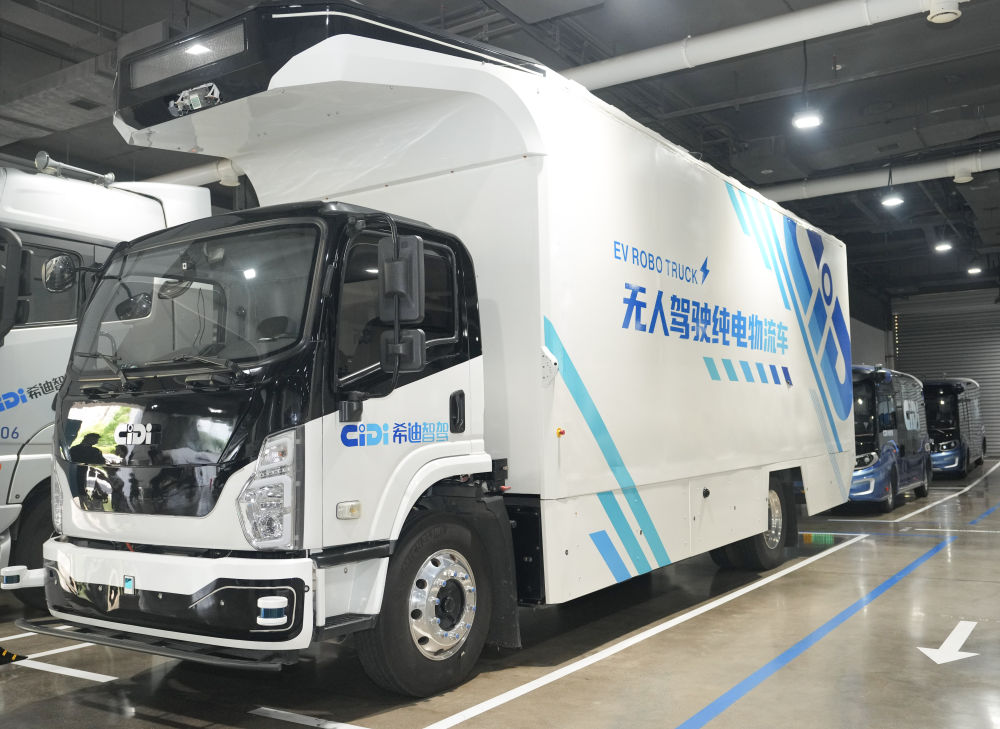 這是在希迪智駕(湖南)有限公司拍攝的無人駕駛純電物流車(2024年8月22日攝)。新華社記者薛宇舸攝