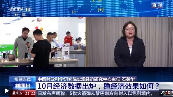 中國財政科學研究院宏觀經濟研究中心主任 石英華:10月份的數據能夠看到我國經濟運行的主要指標都在邊際改善。這表明我國經濟運行平穩,而且在進一步向好的方向發展。