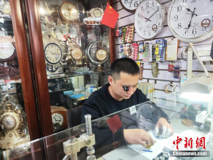 不遠處,聚亨鐘表店的王晴川正低頭專注修表。這家修表店已經傳承了三代人,五年出徒,十年大成,他在此開店已二十三年。秒針的滴答作響中,時間被賦予了新的意義和價值。