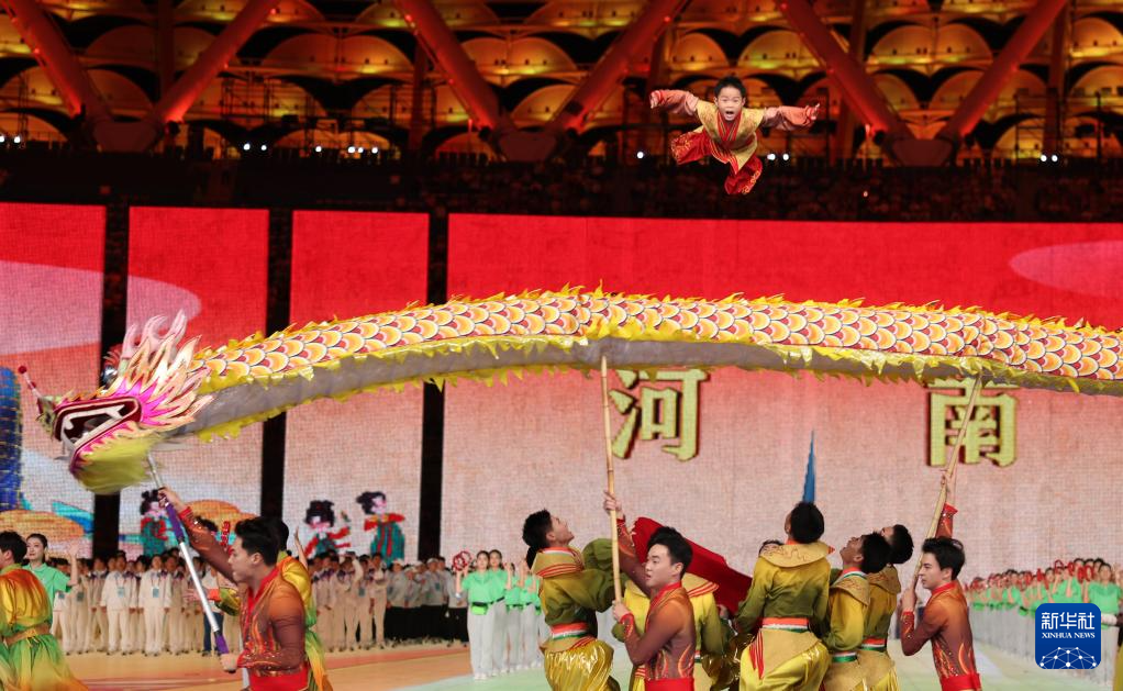 11月22日,開幕式現場升起中華人民共和國國旗、中華人民共和國少數民族傳統體育運動會會旗和中華人民共和國第十二屆少數民族傳統體育運動會會旗。