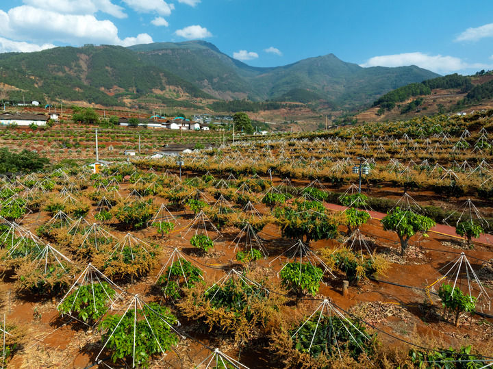這是2024年4月9日拍攝的四川省攀枝花市米易縣新山傈僳族鄉(xiāng)中山村芒果產(chǎn)業(yè)園(無人機(jī)照片)。新華社記者 沈伯韓 攝