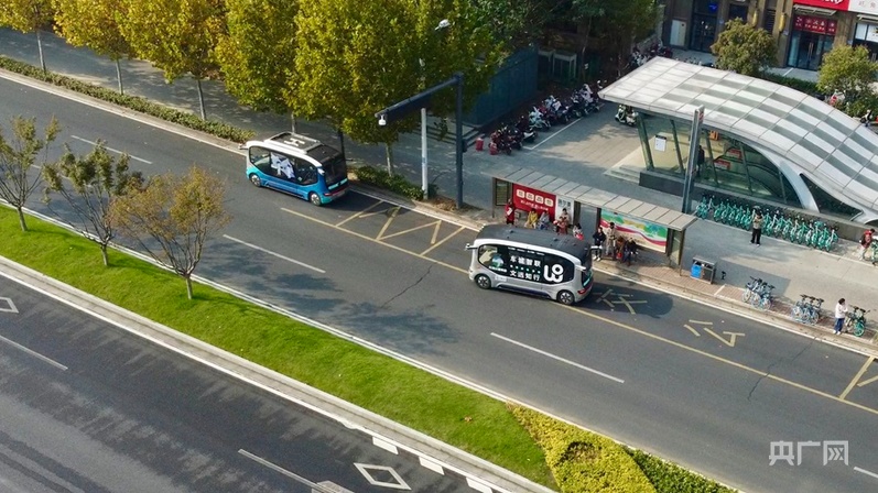運行中的無人小巴車(央廣網記者 王紀民 攝)