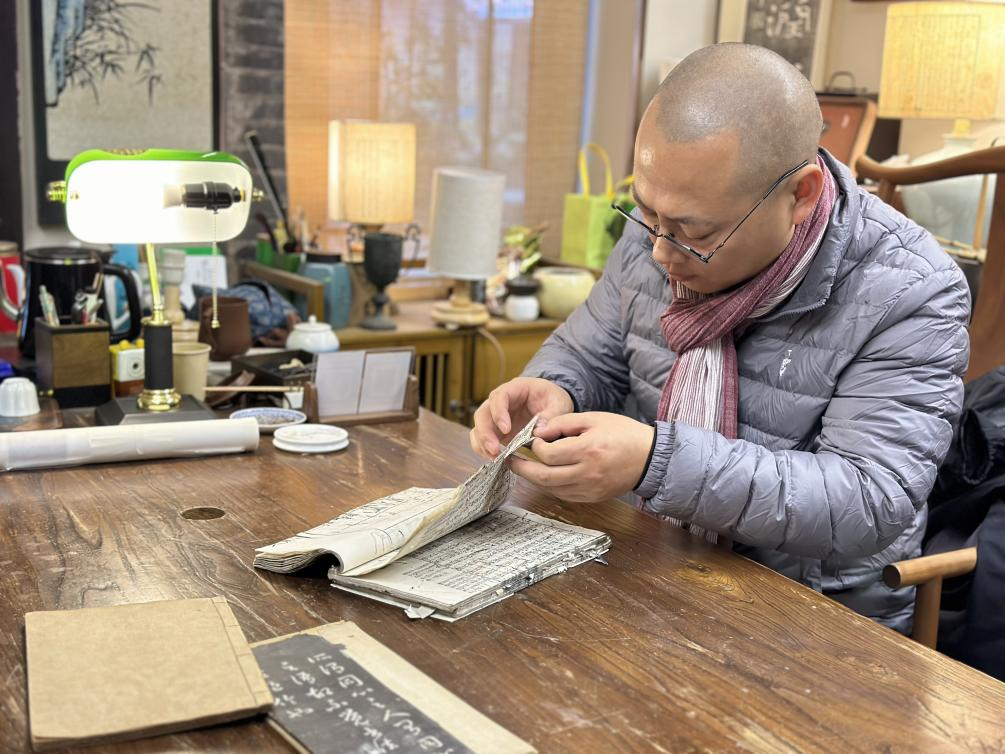 王軍修復古籍(央廣網記者 顧煬威 攝)