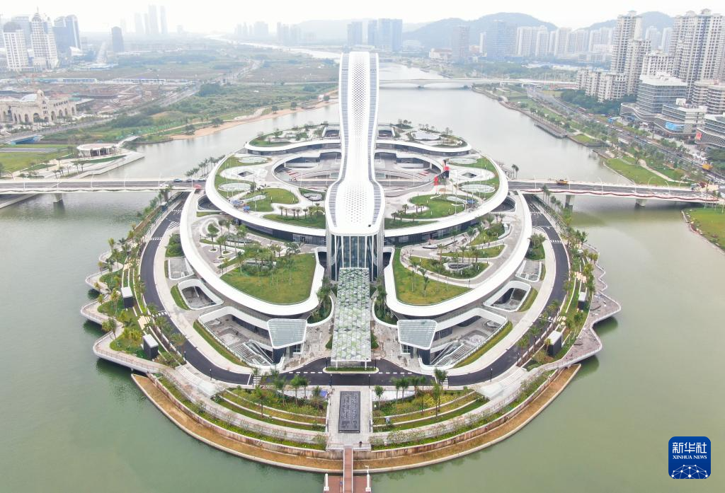 這是橫琴粵澳深度合作區(qū)標(biāo)志(2024年11月26日攝,無人機(jī)照片)。