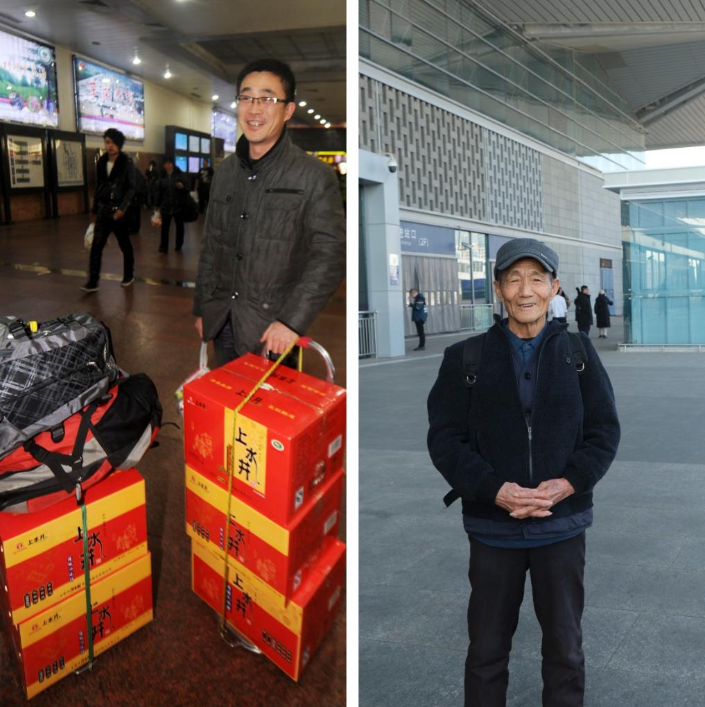 拼版照片。左圖為:2013年1月30日,來自內(nèi)蒙古包頭的徐長青在太原站候車,他買了五箱山西老陳醋帶回家(新華社記者燕雁攝);右圖為:2025年1月18日,在太原南站,一位老人背著一個雙肩包輕松返鄉(xiāng)(新華社記者王學(xué)濤 攝)。新華社發(fā)