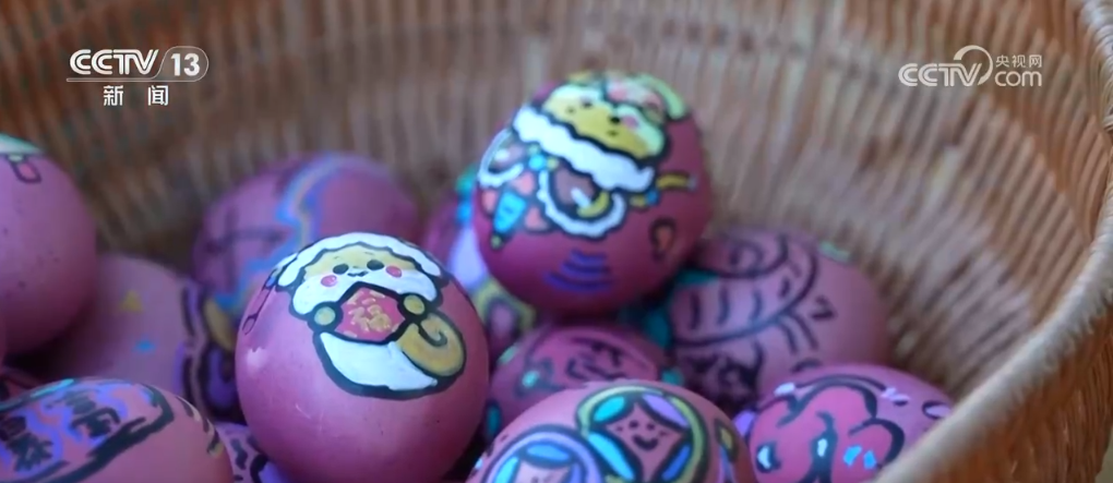 這場“村晚”可是村里的大事兒,當天下午,村民們就忙碌起來。舂粑粑、畫紅蛋、炸麻脆,美食的香氣在村子里彌漫,而要上場的演員們也都已經裝扮起來。