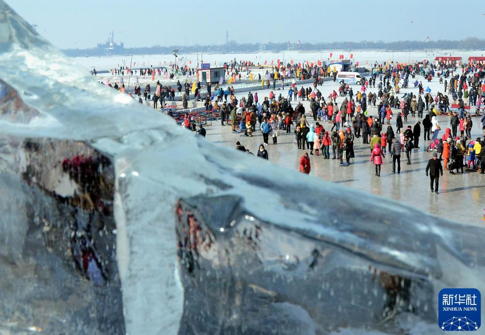 2013年2月15日,在黑龍江省哈爾濱市的松花江江面上,大批市民和游客在滑冰游玩,享受冰雪運動帶來的樂趣。新華社記者 王頌 攝