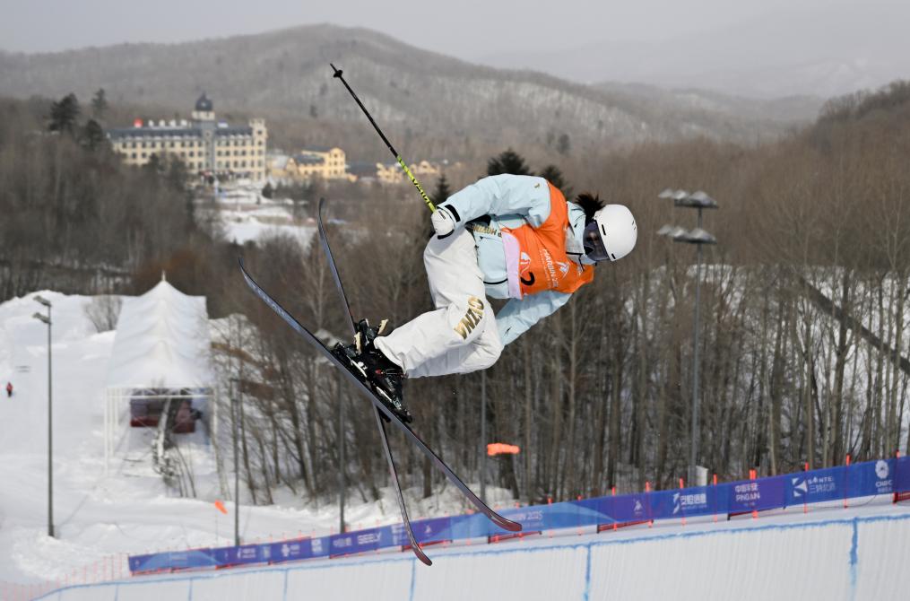2月8日,李方慧在比賽中。當(dāng)日,在第九屆亞冬會(huì)自由式滑雪女子U型場地技巧決賽中,中國選手李方慧獲得金牌,這是中國體育代表團(tuán)在本屆亞冬會(huì)上的首枚金牌。新華社記者 夏一方 攝